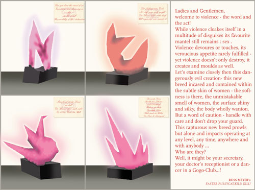 In this room we presented the trailer "SEXBOMB" in its scenery and with some of the equipment, though we modulated everything with THE POPTUMOR, just as we did with the rest of the exhibition. LEARN MORE ABOUT THE POPTUMOR HERE WATCH THE MOVIE TRAILER "SEXBOMB" |